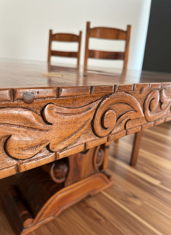 Crafted by skilled artisans, The Monarch Table is a meticulously carved masterpiece. Its unique design and expert craftsmanship add a touch of elegance and sophistication to any room. Made with precision and attention to detail, this table is the perfect blend of art and functionality for your living space. Bring home the Monarch Table and elevate your decor.